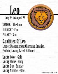 Leo Zodiac sign is ruled by the Sun. Leos are simple, down-to-earth individuals but very clear about their desires. They are enthusiastic people and have a creative bent of mind. They are usually born leaders, ambitious, strong-willed, independent and self-confident.